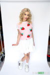 by BBC PieEmma Rosie, tattooed skinny blonde with small natural tits, pierced nipples, blue nails, and tan lines, starts teasing in blue lingerie befo…